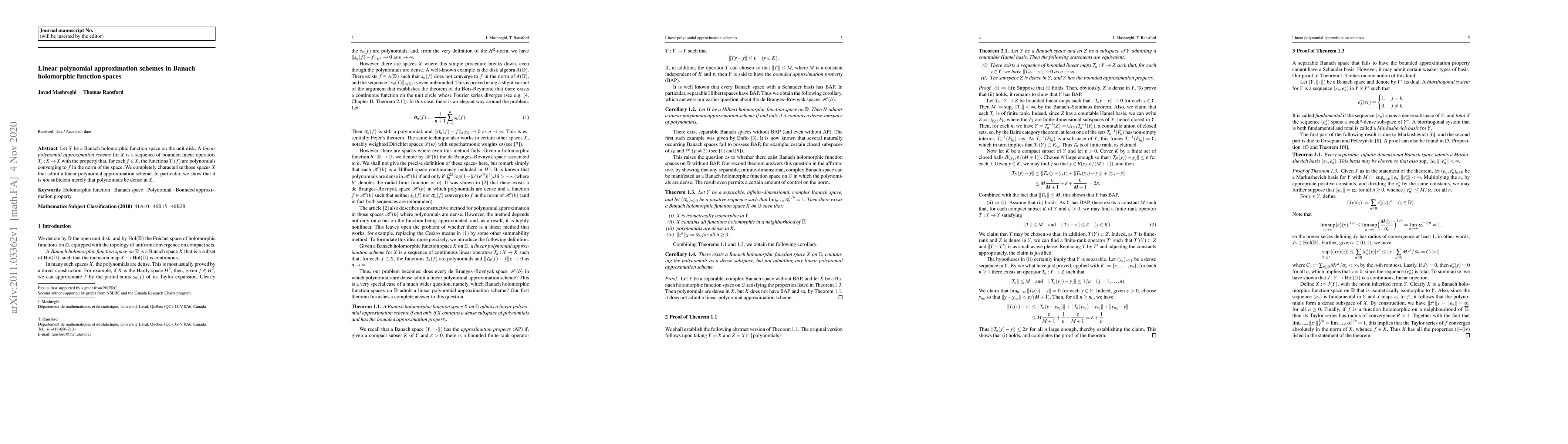 Summary: The paper characterizes Banach holomorphic function spaces that allow for linear polynomial approximation schemes, demonstrating that mere polynomial density is insufficient for such approximation.