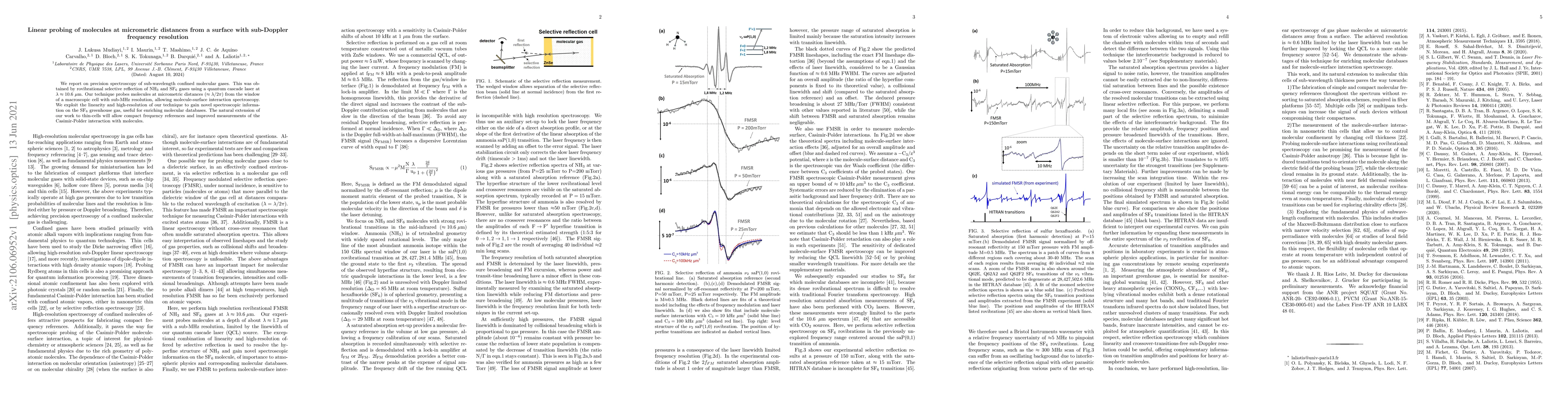 This paper presents a precision spectroscopy technique using a quantum cascade laser to probe $\mathrm{NH_3}$ and $\mathrm{SF_6}$ gases at micrometric distances from a surface with sub-MHz resolution, enabling detailed study of molecule-surface interactions and novel spectroscopic insights on $\mathrm{SF_6}$.