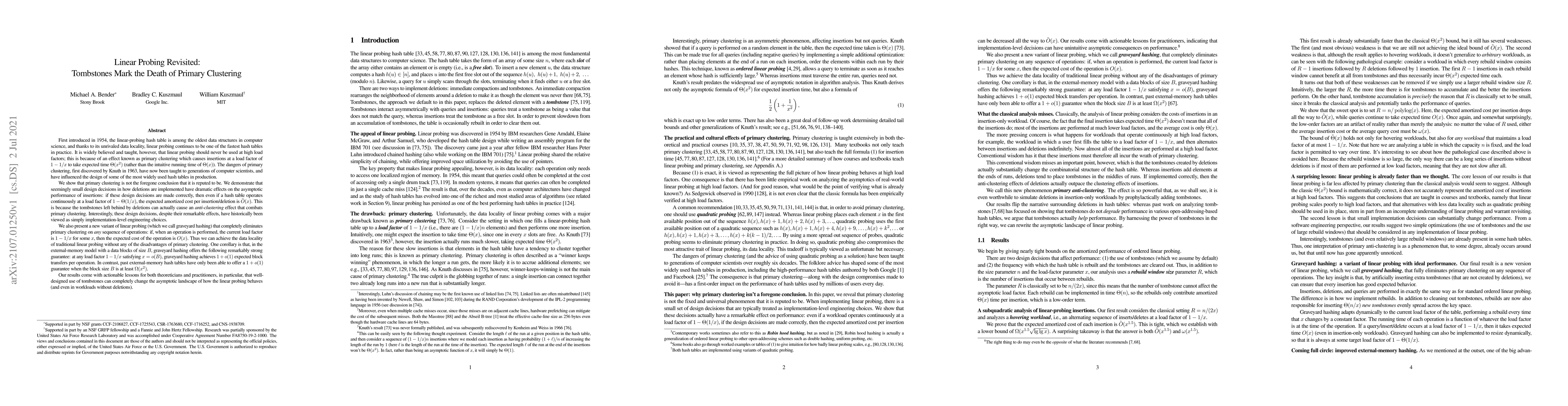 This paper revisits linear probing, demonstrating that tombstones from deletions counteract primary clustering, thus maintaining amortized insertion times of $\tilde{O}(x)$ even at high load factors. It introduces graveyard hashing, a variant that eliminates primary clustering entirely, achieving optimal performance in external-memory models.