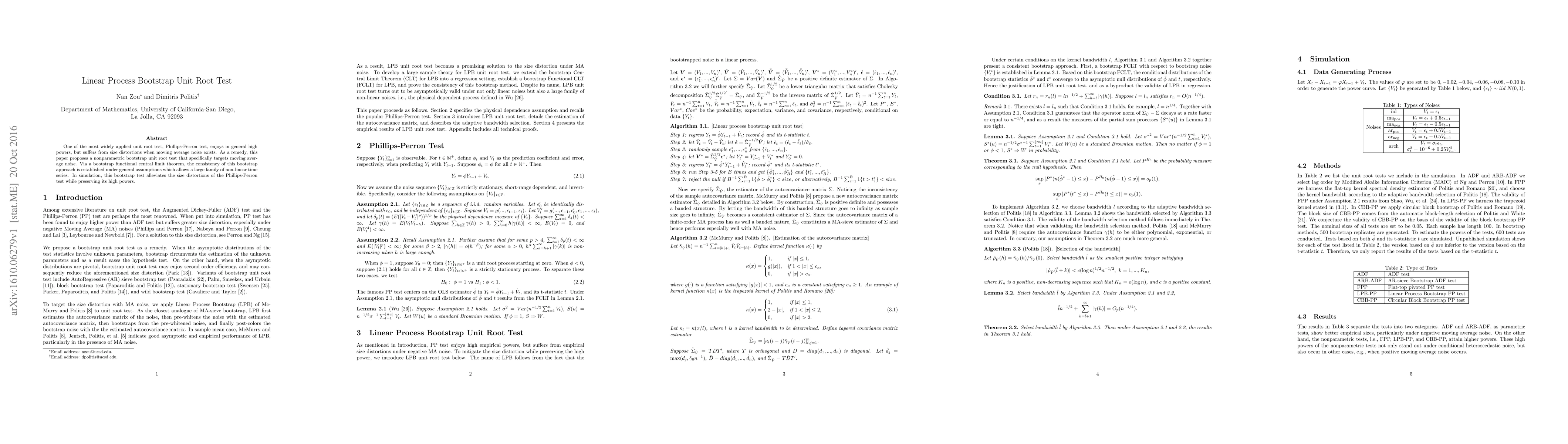 This paper proposes a nonparametric bootstrap unit root test to address size distortions in the Phillips-Perron test when dealing with moving average noise. The proposed method maintains high power and effectively reduces size distortions, as demonstrated through simulations.