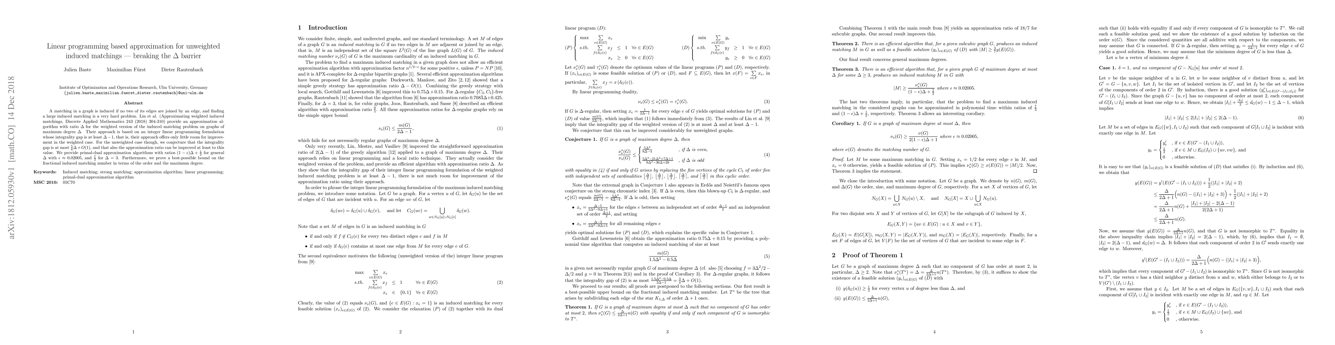 This paper presents linear programming-based approximation algorithms for unweighted induced matchings, improving the $\Delta$ approximation ratio and breaking the $\Delta$ barrier. The authors achieve a $(1-\epsilon)\Delta + \frac{1}{2}$ ratio for general $\Delta$ and $\frac{7}{3}$ for $\Delta=3$.