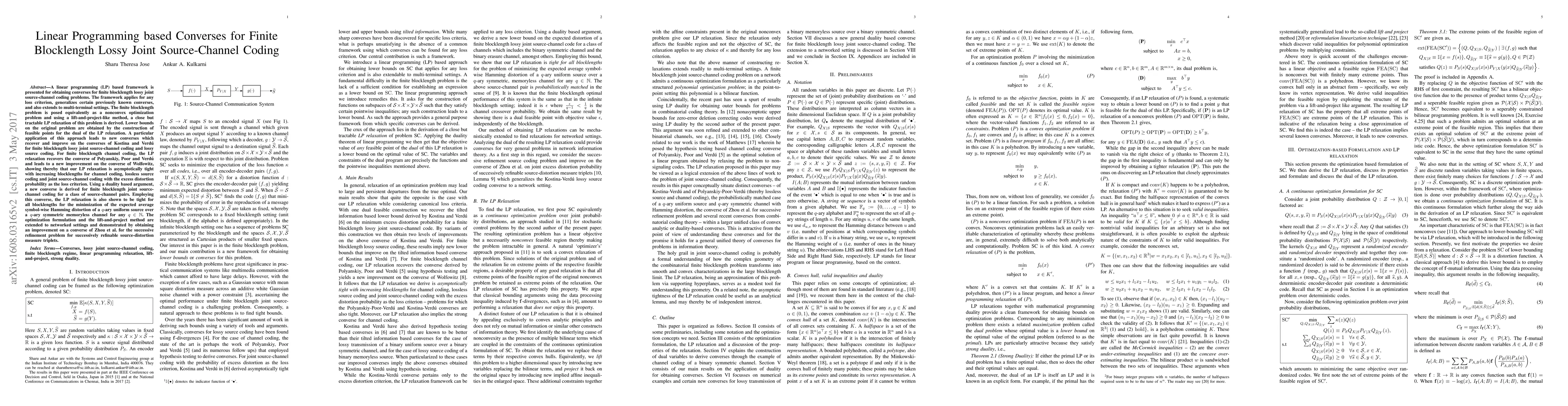 This paper presents a linear programming (LP) framework for deriving converses in finite blocklength lossy joint source-channel coding, generalizing previous results and extending to multi-terminal settings. The LP relaxation method is shown to be asymptotically tight for various coding problems, including channel coding and joint source-channel coding.