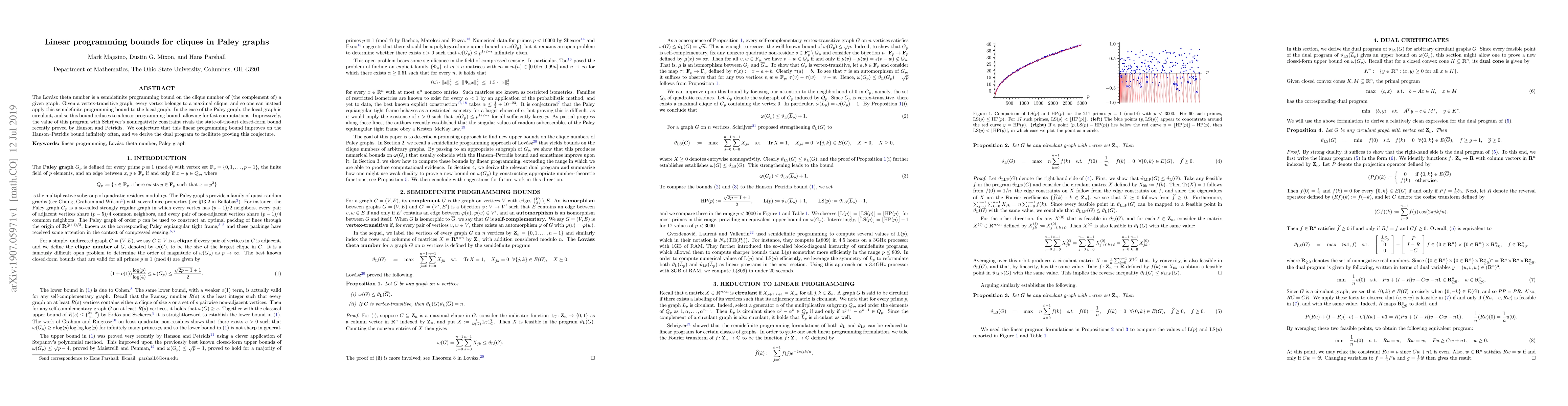 The Lov\'{a}sz theta number is a semidefinite programming bound on the clique number of (the complement of) a given graph. Given a vertex-transitive graph, every vertex belongs to a maximal clique, and so one can instead apply this semidefinite programming bound to the local graph. In the case of the Paley graph, the local graph is circulant, and so this bound reduces to a linear programming bound, allowing for fast computations. Impressively, the value of this program with Schrijver's nonnegativity constraint rivals the state-of-the-art closed-form bound recently proved by Hanson and Petridis. We conjecture that this linear programming bound improves on the Hanson-Petridis bound infinitely often, and we derive the dual program to facilitate proving this conjecture.