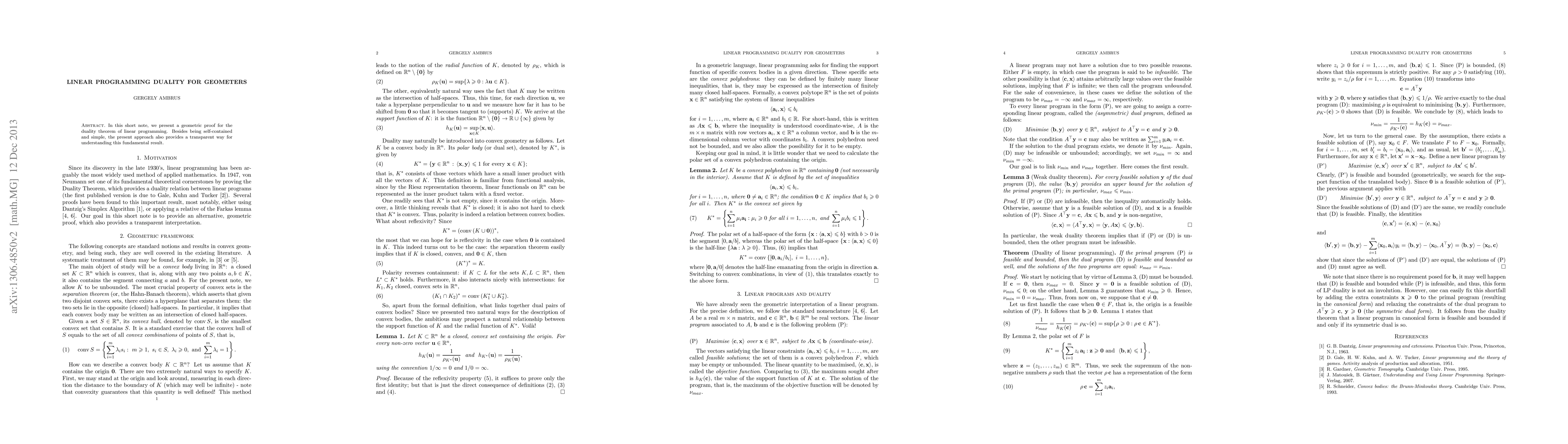 This paper offers a geometric proof of the duality theorem in linear programming, aiming to provide a clear and intuitive understanding of this fundamental result through geometric reasoning.