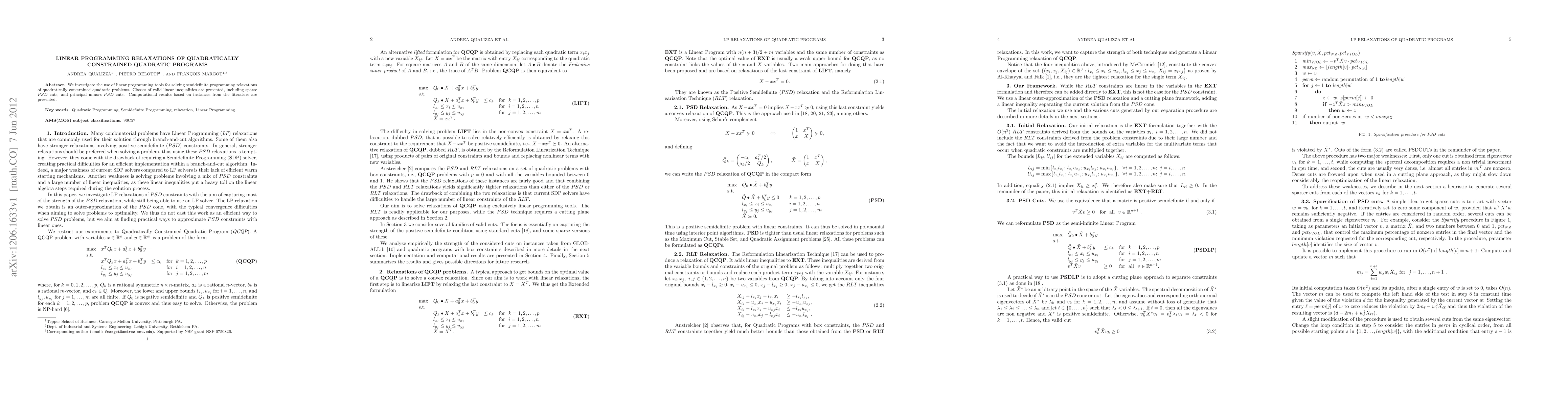 This paper explores linear programming techniques for solving semidefinite programming relaxations of quadratically constrained quadratic programs. It introduces classes of valid linear inequalities, such as sparse PSD cuts and principal minors PSD cuts, and reports computational results on benchmark instances.
