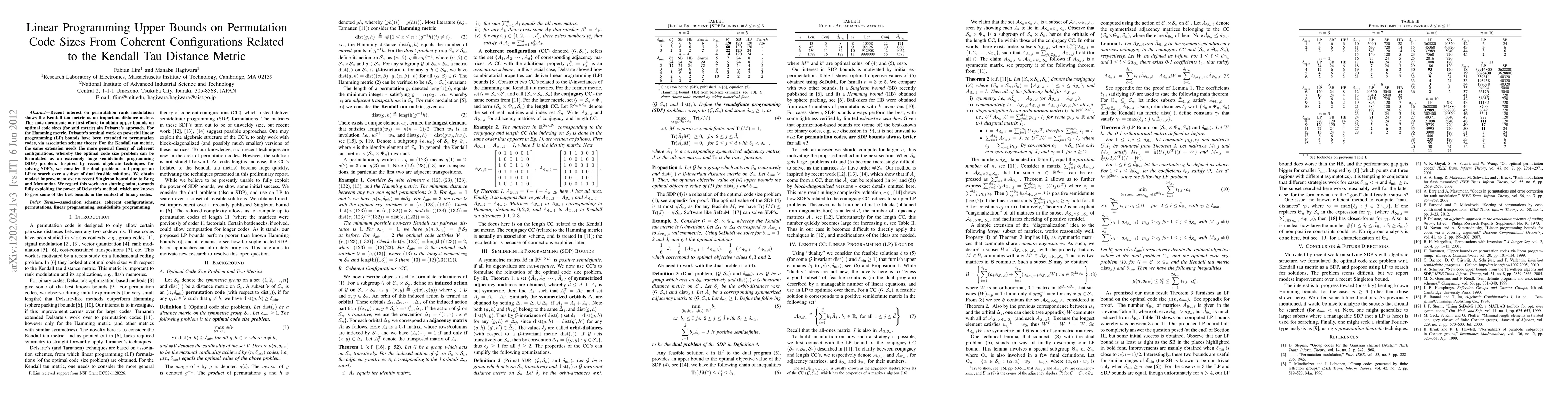 Recent interest on permutation rank modulation shows the Kendall tau metric as an important distance metric. This note documents our first efforts to obtain upper bounds on optimal code sizes (for said metric) ala Delsarte's approach. For the Hamming metric, Delsarte's seminal work on powerful linear programming (LP) bounds have been extended to permutation codes, via association scheme theory. For the Kendall tau metric, the same extension needs the more general theory of coherent configurations, whereby the optimal code size problem can be formulated as an extremely huge semidefinite programming (SDP) problem. Inspired by recent algebraic techniques for solving SDP's, we consider the dual problem, and propose an LP to search over a subset of dual feasible solutions. We obtain modest improvement over a recent Singleton bound due to Barg and Mazumdar. We regard this work as a starting point, towards fully exploiting the power of Delsarte's method, which are known to give some of the best bounds in the context of binary codes.