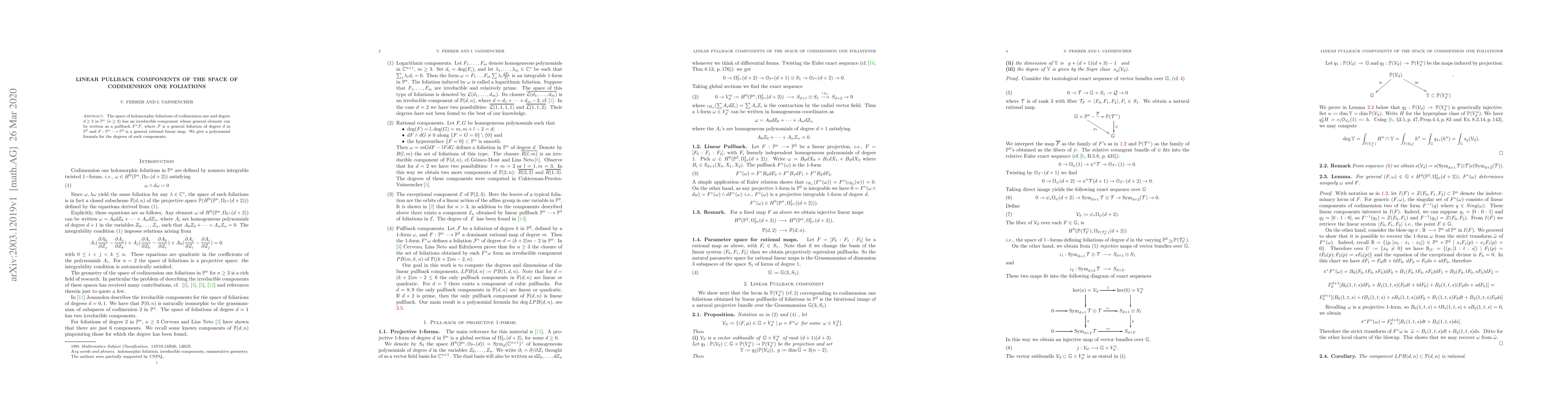 This research investigates an irreducible component of the space of codimension one foliations in projective space, demonstrating that it comprises pullbacks of foliations from $\mathbb{P}^2$ via general rational linear maps, and provides a polynomial formula for their degrees.