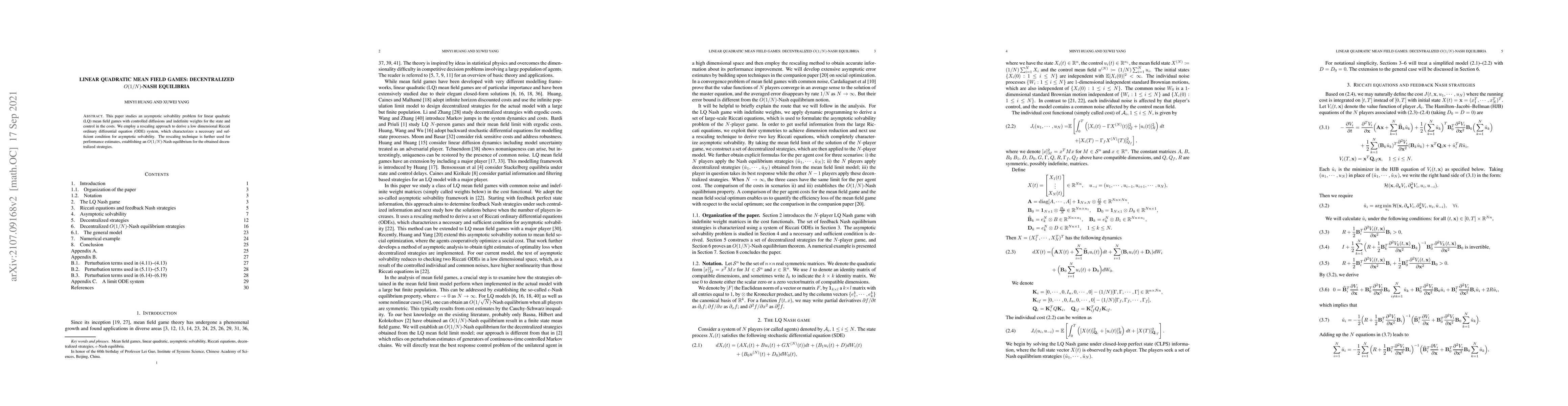 This paper investigates linear quadratic mean field games with controlled diffusions, deriving a low-dimensional Riccati ODE system for asymptotic solvability. It establishes an $O(1/N)$-Nash equilibrium for decentralized strategies using a rescaling approach.
