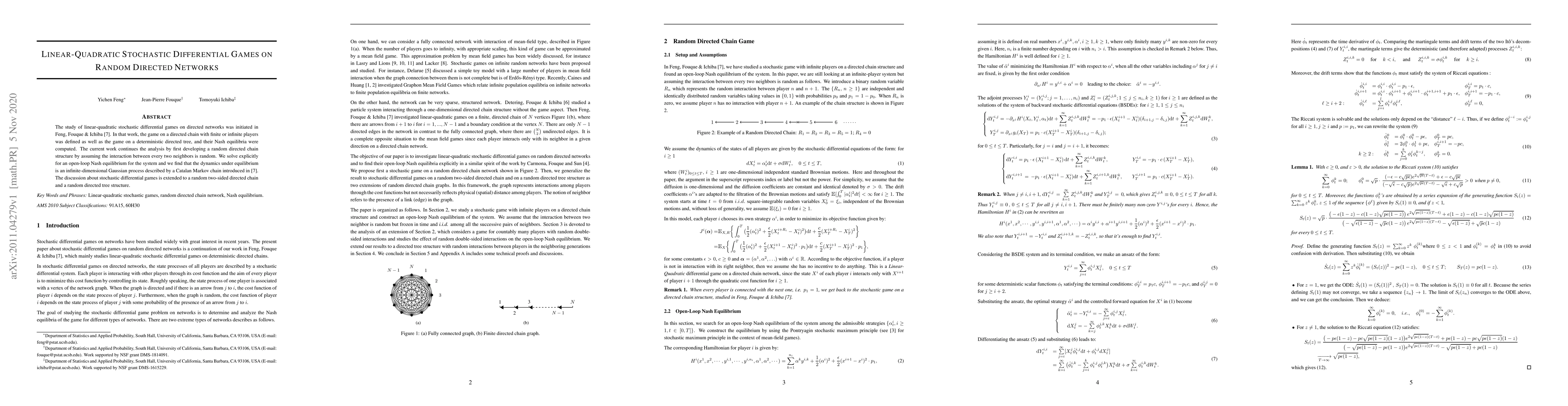 This paper extends the study of linear-quadratic stochastic differential games on directed networks, focusing on random directed chain and tree structures. It explicitly solves for an open-loop Nash equilibrium, revealing that the equilibrium dynamics form an infinite-dimensional Gaussian process described by a Catalan Markov chain.