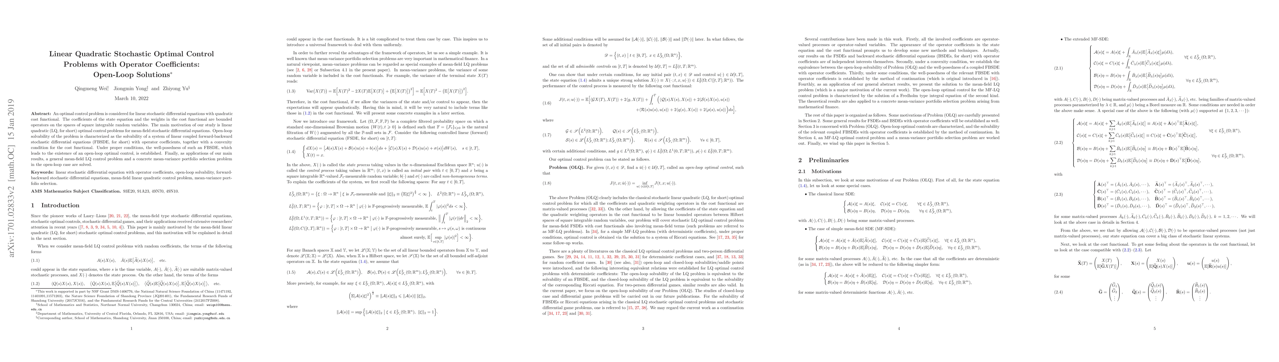 An optimal control problem is considered for linear stochastic differential equations with quadratic cost functional. The coefficients of the state equation and the weights in the cost functional are bounded operators on the spaces of square integrable random variables. The main motivation of our study is linear quadratic optimal control problems for mean-field stochastic differential equations. Open-loop solvability of the problem is investigated, which is characterized as the solvability of a system of linear coupled forward-backward stochastic differential equations (FBSDE, for short) with operator coefficients. Under proper conditions, the well-posedness of such an FBSDE is established, which leads to the existence of an open-loop optimal control. Finally, as an application of our main results, a general mean-field linear quadratic control problem in the open-loop case is solved.