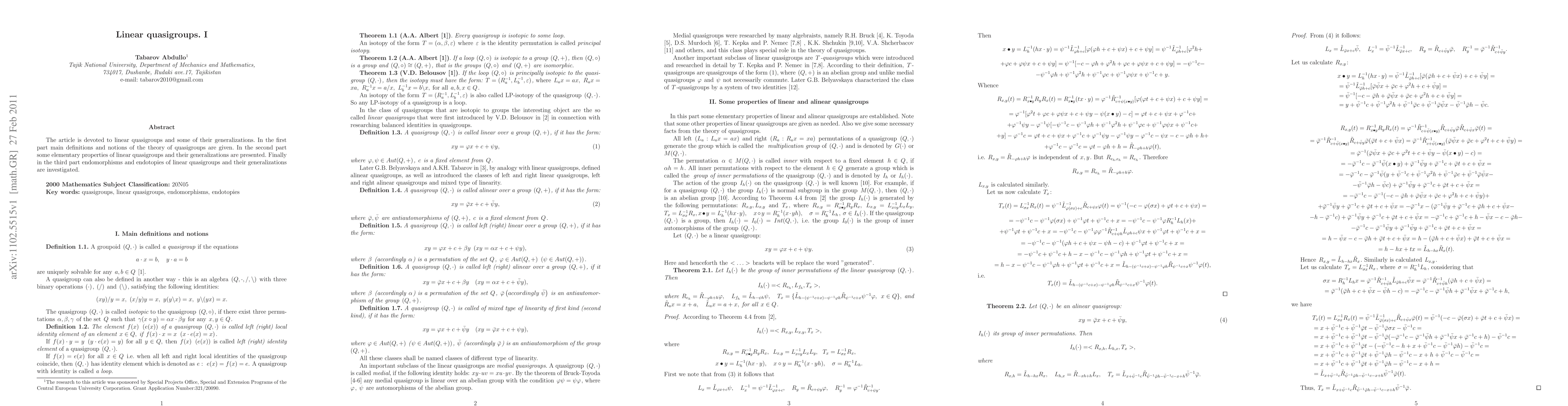 This paper explores linear quasigroups, defining key concepts and examining their elementary properties. It also investigates endomorphisms and endotopies of these quasigroups and their generalizations.