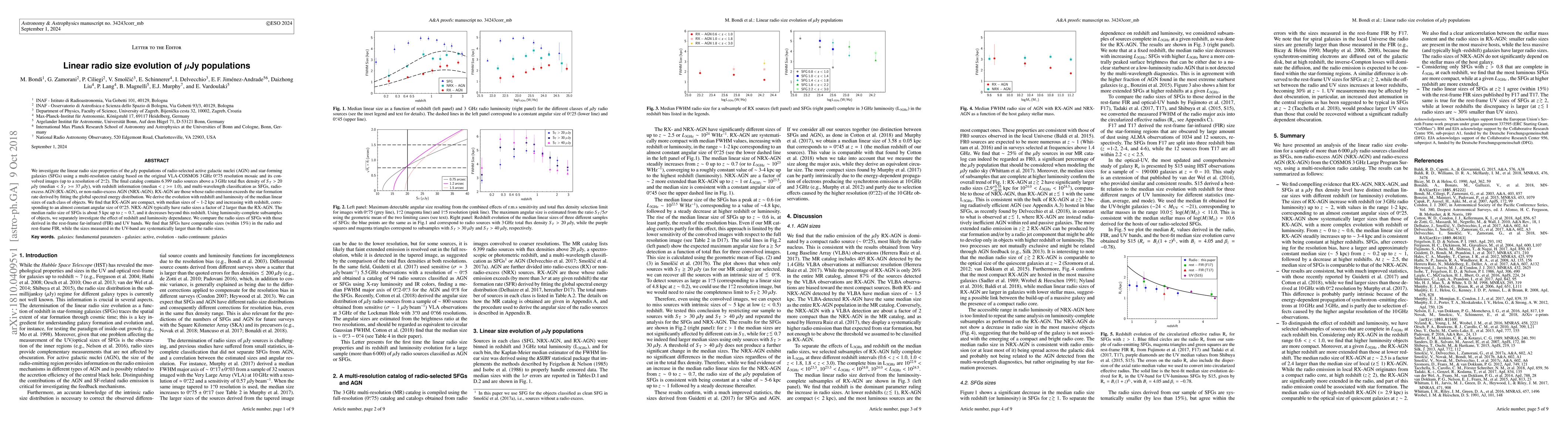 We investigate the linear radio size properties of the $\mu$Jy populations of