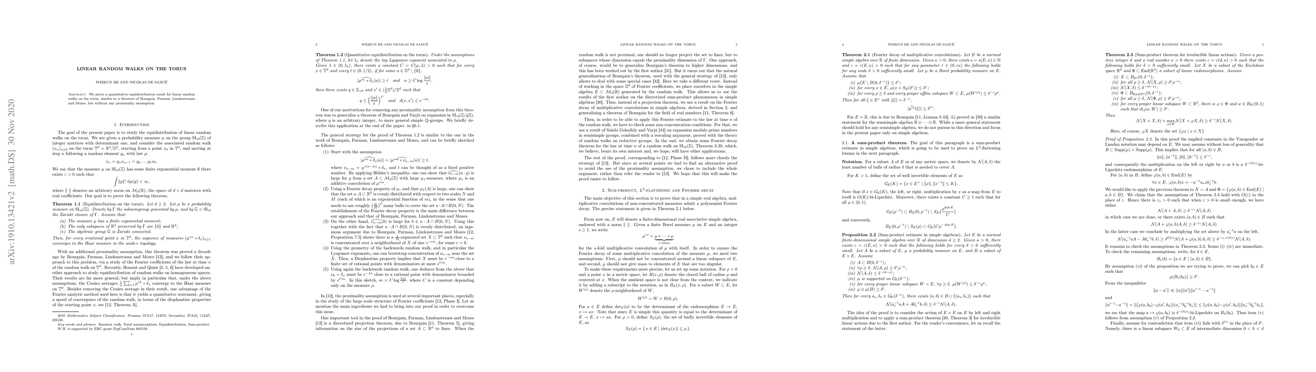 Summary: This paper establishes a quantitative equidistribution theorem for linear random walks on the torus without requiring the proximality assumption, extending results previously proven by Bourgain, Furman, Lindenstrauss, and Mozes.