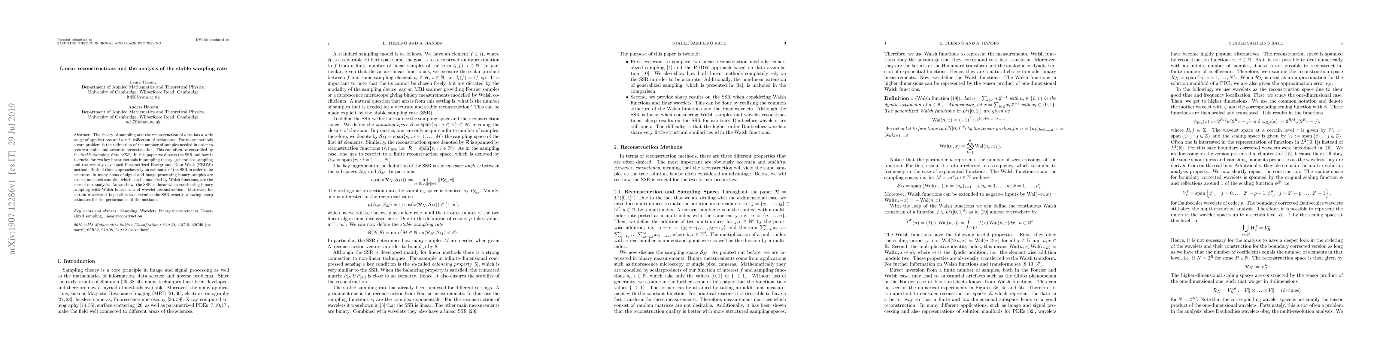 The paper presents a detailed analysis of the Stable Sampling Rate (SSR) for linear reconstruction methods, demonstrating its linearity for certain wavelets and providing sharp bounds for specific cases like Haar wavelets and Walsh functions.