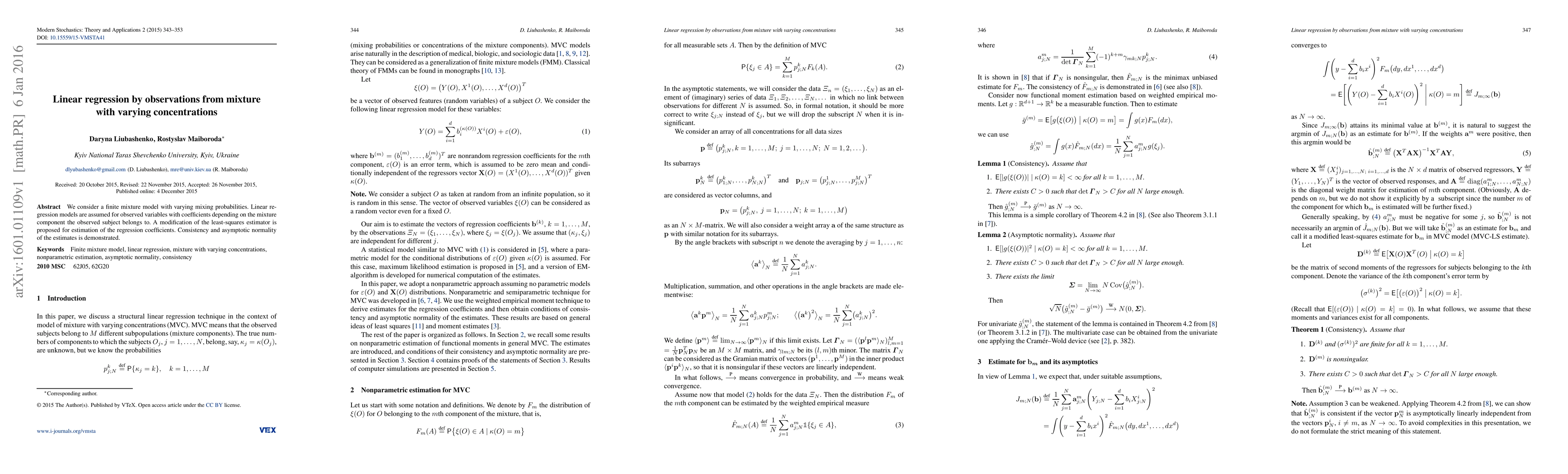 A finite mixture model with varying mixing probabilities is used, where linear regression models are assumed for observed variables with coefficients depending on the mixture component.