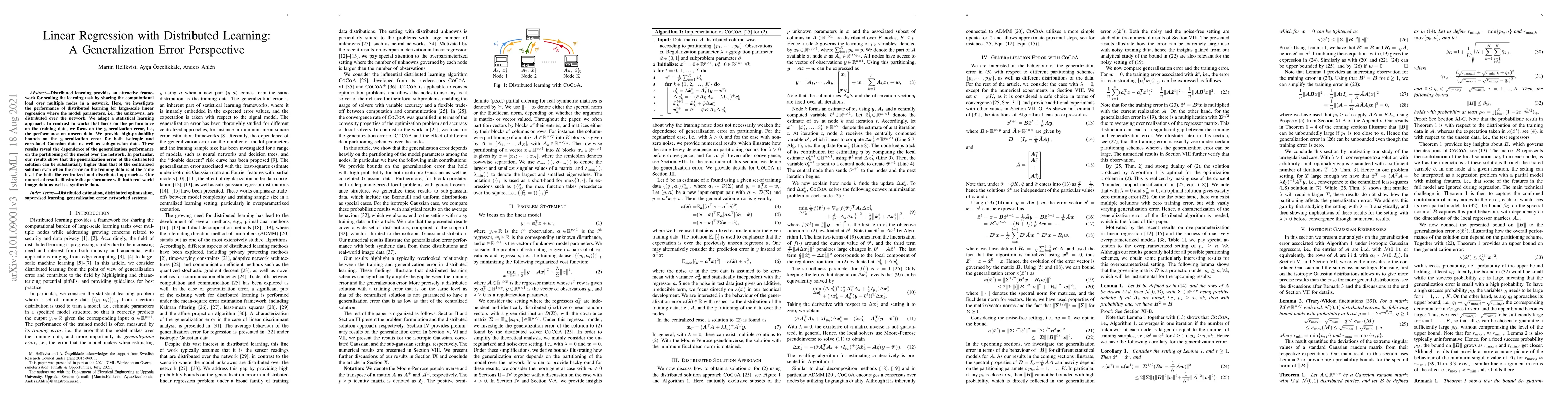 This paper examines distributed learning for large-scale linear regression, focusing on generalization error rather than training performance. It provides high-probability bounds on the generalization error for various data types, revealing that distributed solutions can have higher errors compared to centralized ones, despite similar training errors.