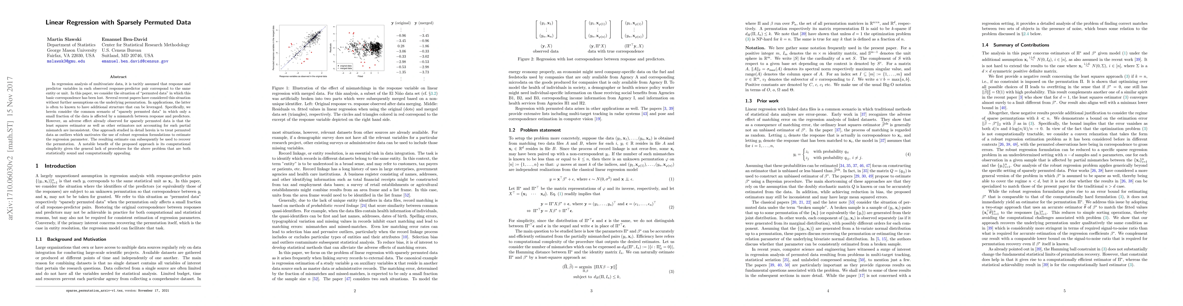 Researchers propose a new approach to linear regression for data with sparse permutations, where only a small fraction of data is misaligned. Their method uses robust regression to estimate the model parameters and subsequently recovers the permutation.