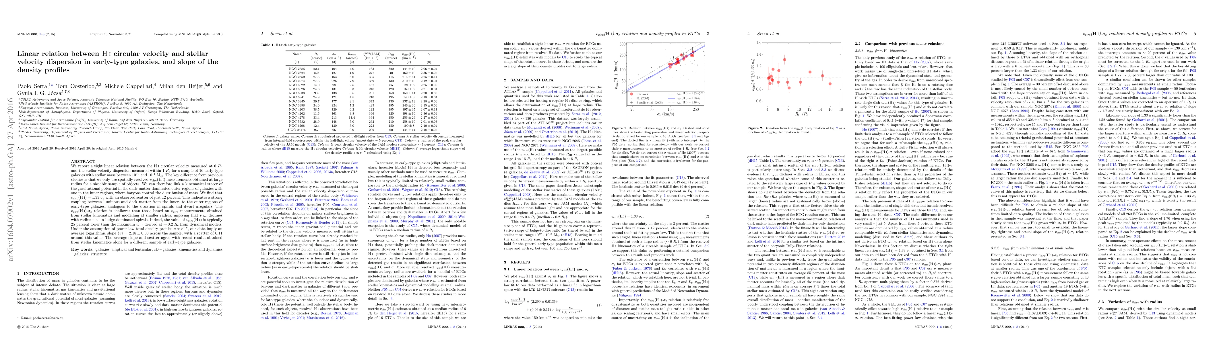 This study reveals a strong linear correlation between the HI circular velocity at large radii and stellar velocity dispersion in early-type galaxies, indicating a tight coupling between luminous and dark matter across the galaxies. The derived slope of the density profiles suggests a consistent density distribution in these galaxies.