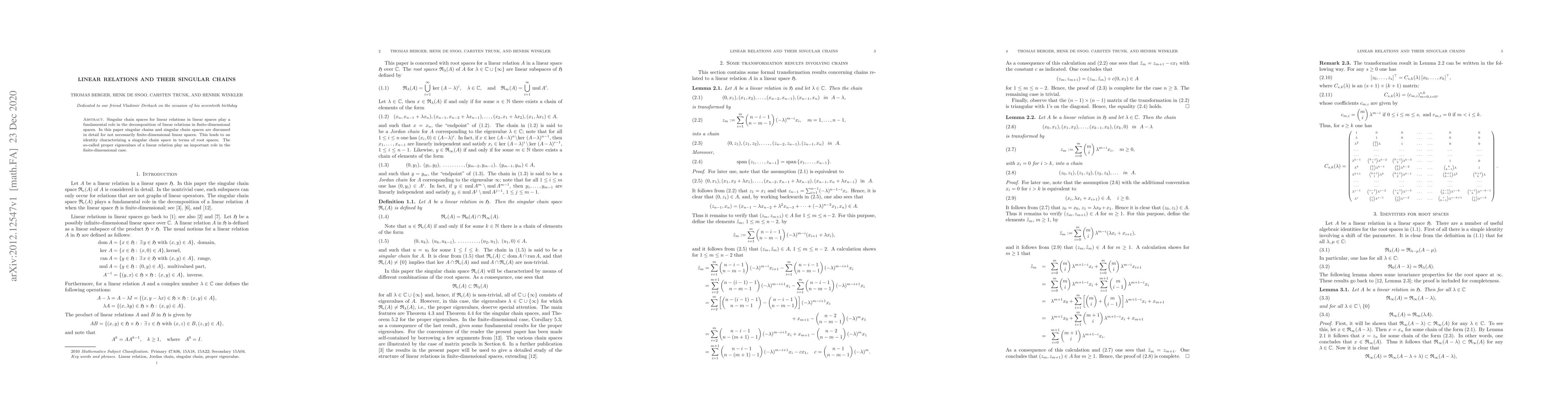 Researchers explore singular chain spaces for linear relations in non-finite-dimensional spaces, introducing a characterization of these spaces via root spaces. They also discuss the role of proper eigenvalues in finite-dimensional cases.
