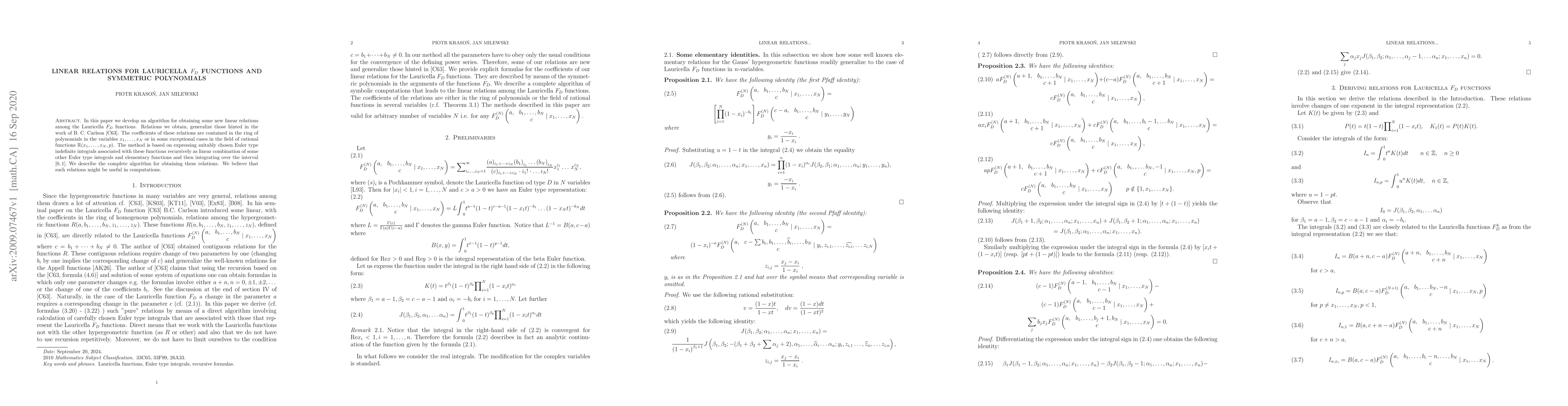 Researchers developed an algorithm to find linear relations among Lauricella $F_D$ functions, which may aid in computations. The method involves expressing Euler type integrals as linear combinations of other integrals and elementary functions.