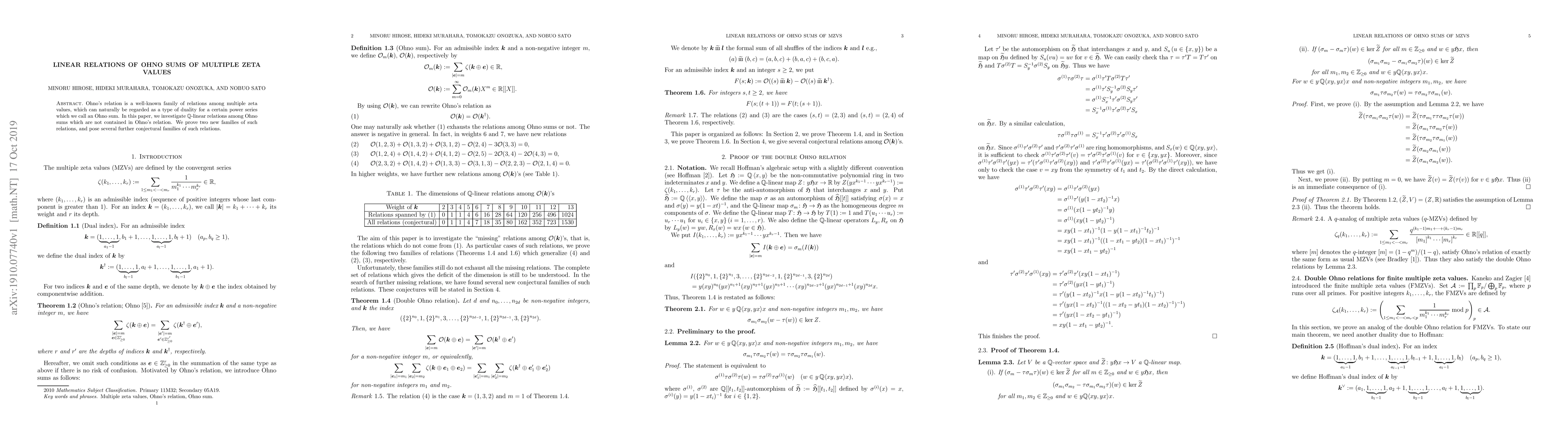 This paper investigates $\mathbb{Q}$-linear relations among Ohno sums beyond Ohno's relation, proving two new families of such relations and proposing several conjectured additional families.