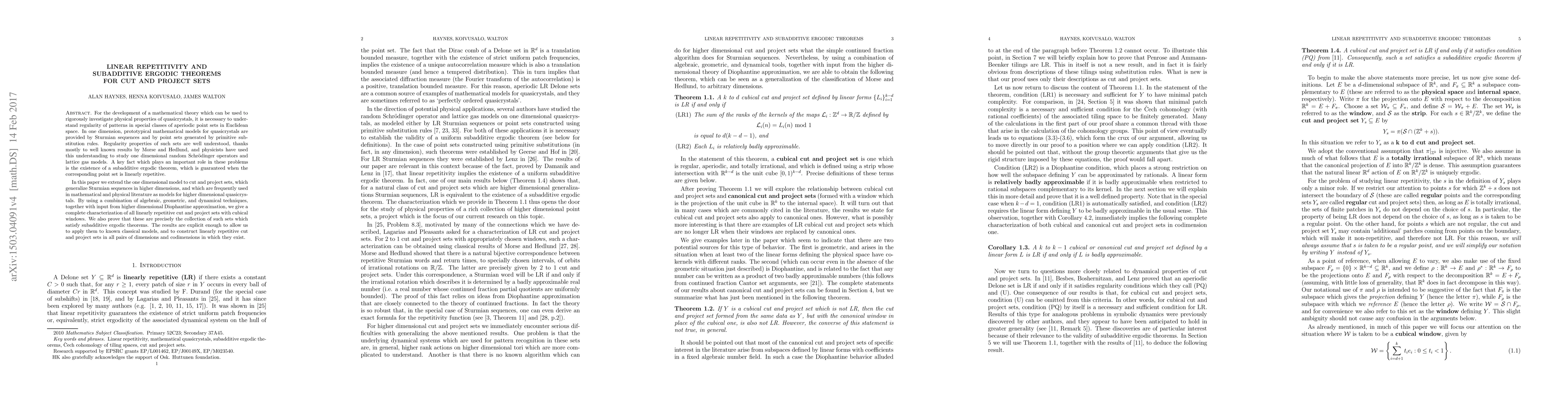 This paper characterizes linearly repetitive cut and project sets with cubical windows using algebraic, geometric, and dynamical methods, and proves they satisfy subadditive ergodic theorems. The results are detailed enough to apply to classical models and construct such sets in various dimensions.