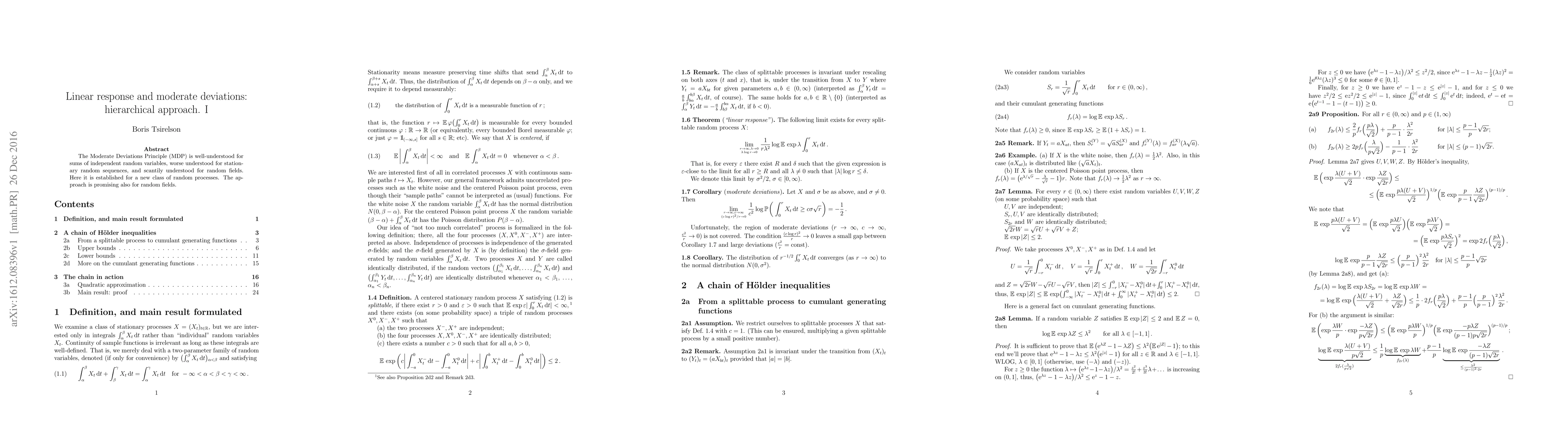 This is basically a polished presentation for Sections 1,2 of arXiv:0801.1050. The Moderate Deviations Principle (MDP) is well-understood for sums of independent random variables, worse understood for stationary random sequences, and scantily understood for random fields. Here it is established for a new class of random processes. The approach is promising also for random fields.