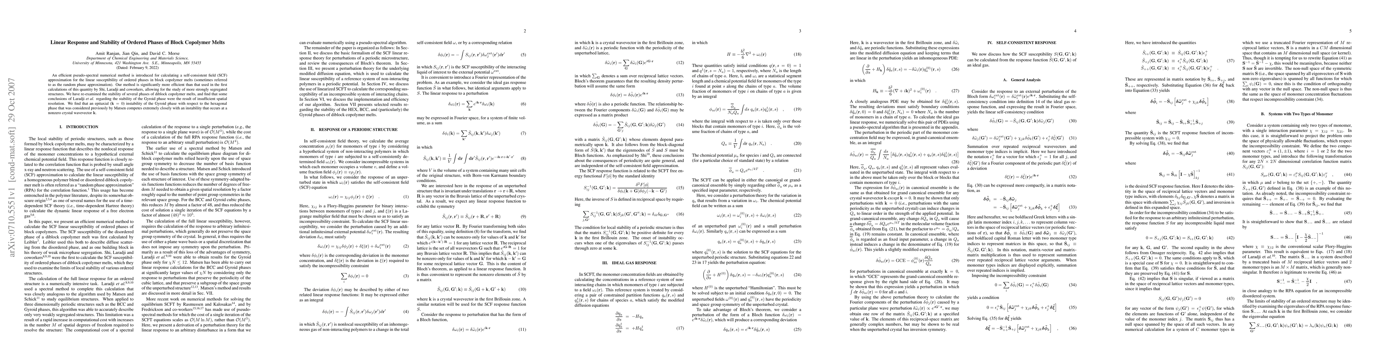 This paper introduces a more efficient pseudo-spectral numerical method for calculating the linear susceptibility of ordered phases in block copolymer melts, allowing for the study of stronger segregation structures. The authors re-evaluate the stability of diblock copolymer phases, finding that previous conclusions about the Gyroid phase's stability were due to insufficient resolution, and identify a competing epitaxial instability.