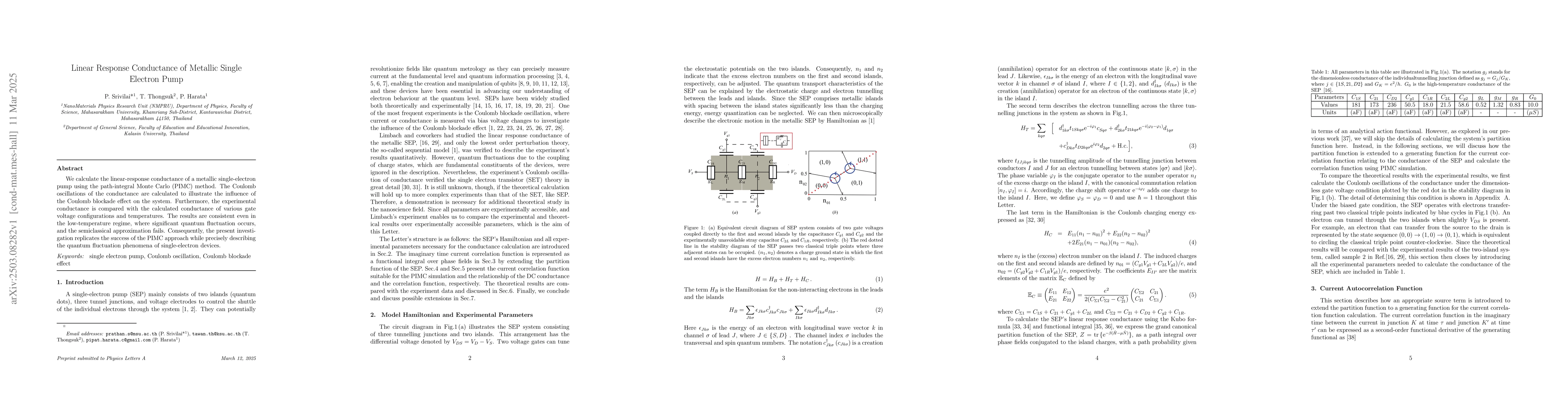 Development and application of the PIMC method to accurately model and calculate the linear-response conductance of metallic single-electron pumps, capturing quantum fluctuations in low-temperature regimes.