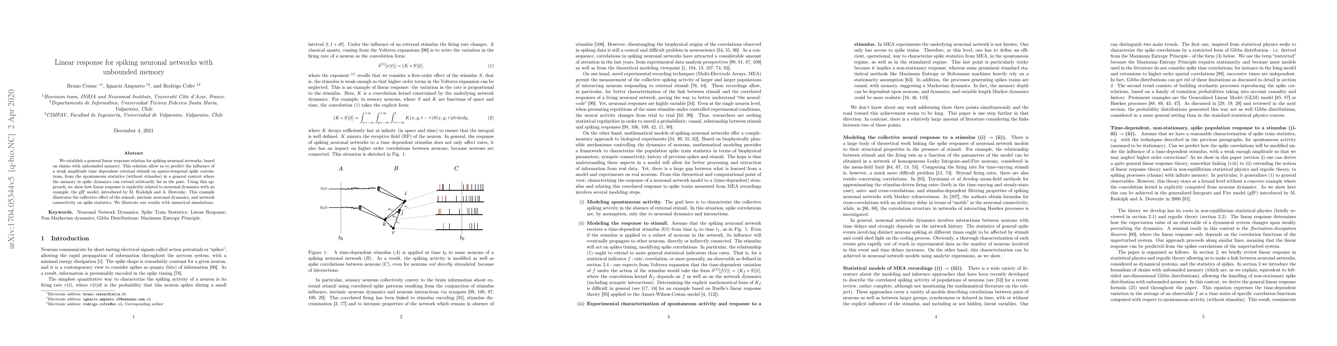 This study establishes a general linear response relation for spiking neuronal networks with unbounded memory, allowing predictions of the influence of external stimuli on spike correlations.