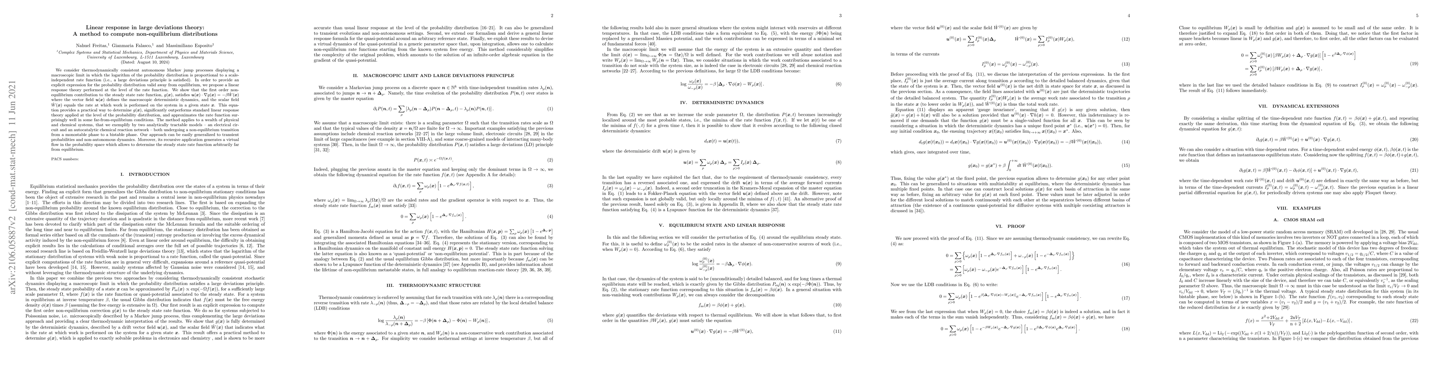 Researchers developed a method to compute non-equilibrium distributions in thermodynamic systems using linear response theory at the level of rate functions, outperforming traditional methods and approximating rate functions well in far-from-equilibrium conditions.