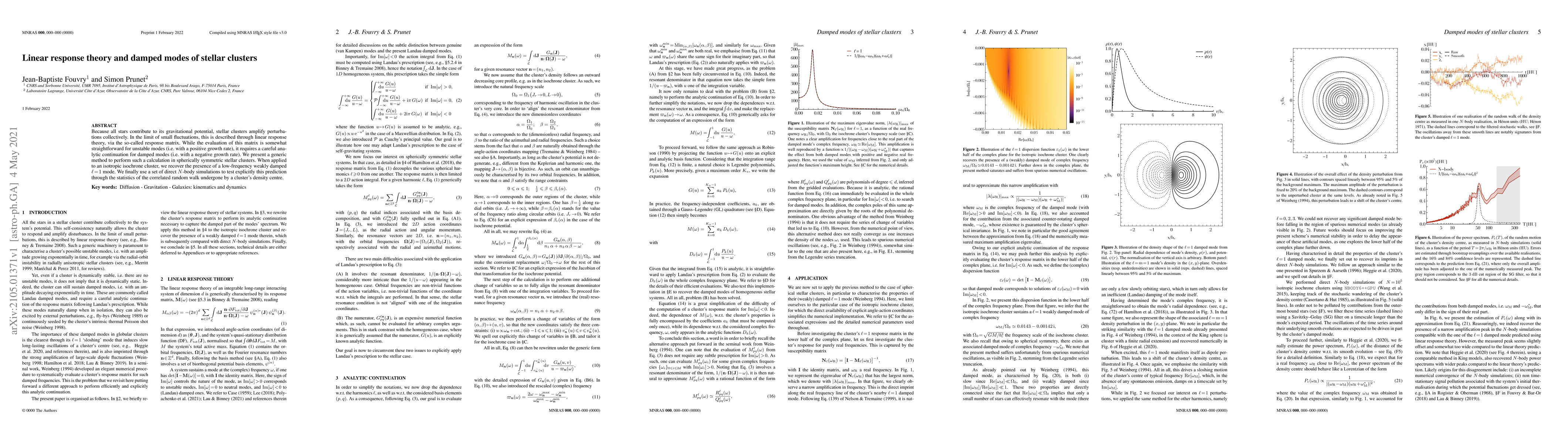 Researchers developed a method to analyze damped modes in stellar clusters using linear response theory, recovering a weakly damped mode with a low frequency in simulations.