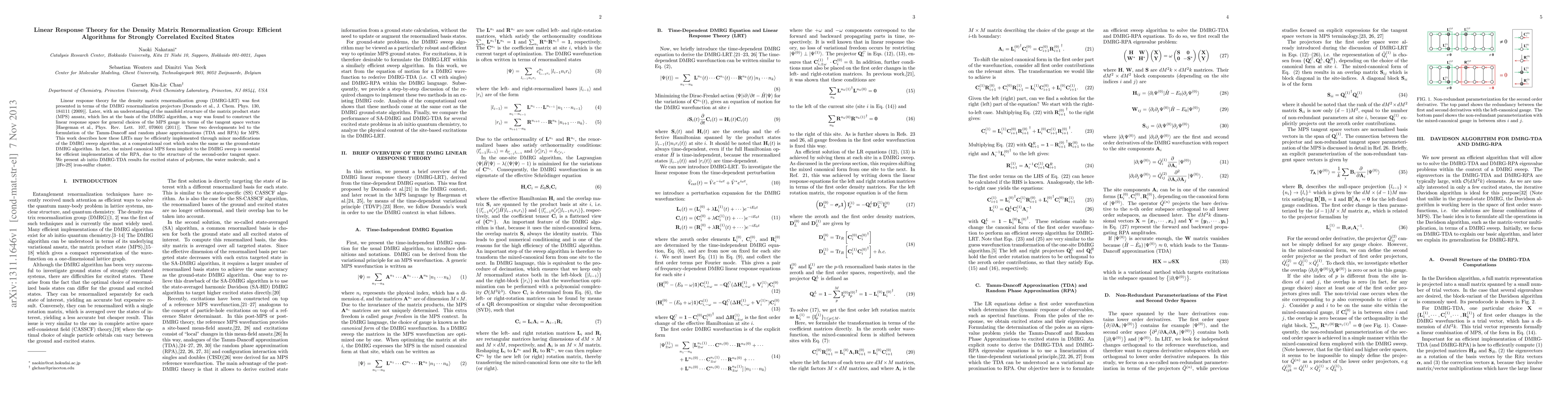 This paper presents efficient algorithms for implementing linear response theory within the density matrix renormalization group (DMRG) framework, enabling the study of excited states in strongly correlated systems. It details modifications to the DMRG sweep algorithm that maintain computational costs comparable to ground-state calculations, demonstrating the approach through ab initio calculations on various molecular systems.