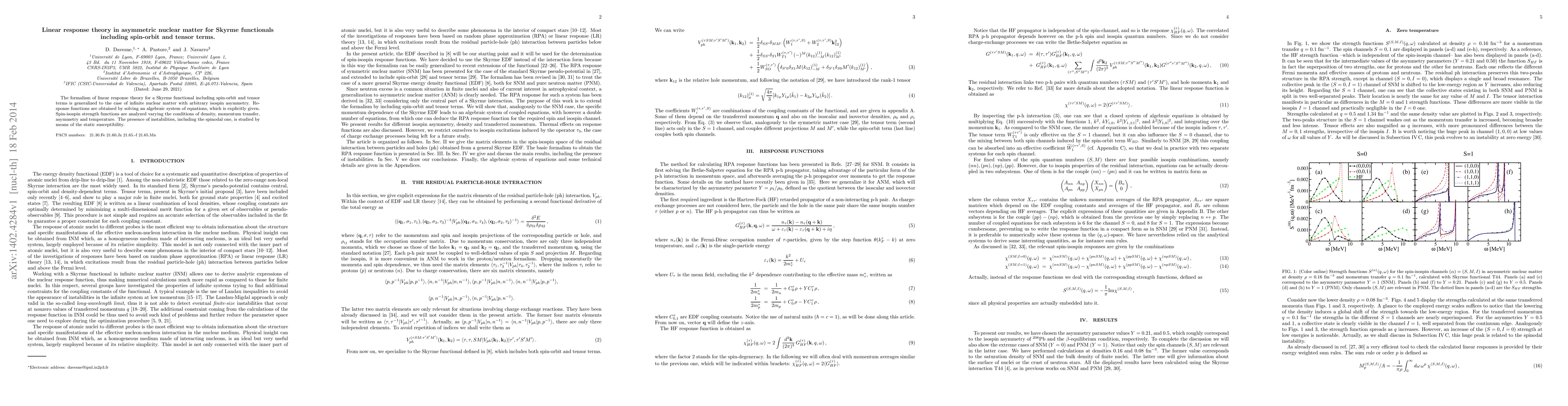 This paper generalizes linear response theory for Skyrme functionals in asymmetric nuclear matter, including spin-orbit and tensor terms, and derives response functions through an algebraic system. It analyzes spin-isospin strength functions under varying density, asymmetry, and temperature, and investigates instabilities via static susceptibility.