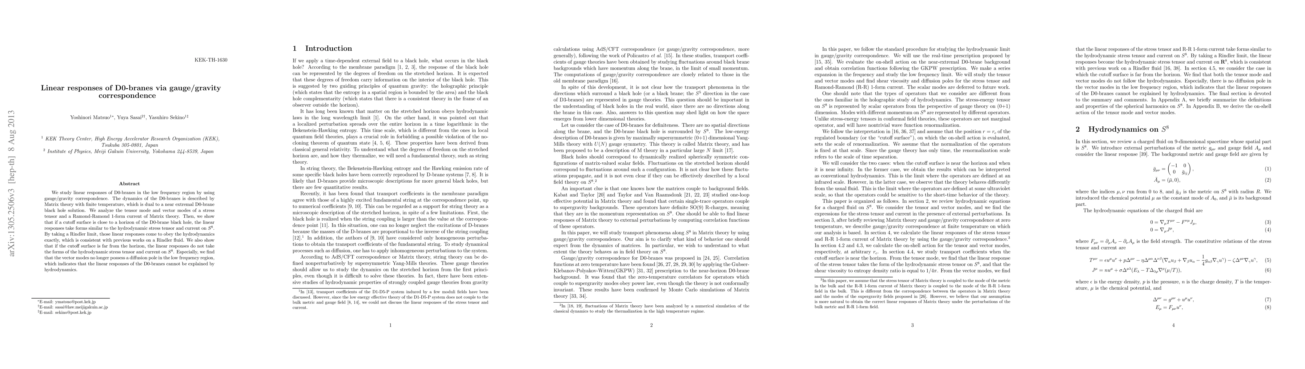 This paper explores the linear responses of D0-branes using gauge/gravity correspondence, revealing that near the horizon of a near extremal D0-brane black hole, responses resemble hydrodynamic behavior, while far from the horizon, they deviate significantly from hydrodynamic forms, especially in vector modes.