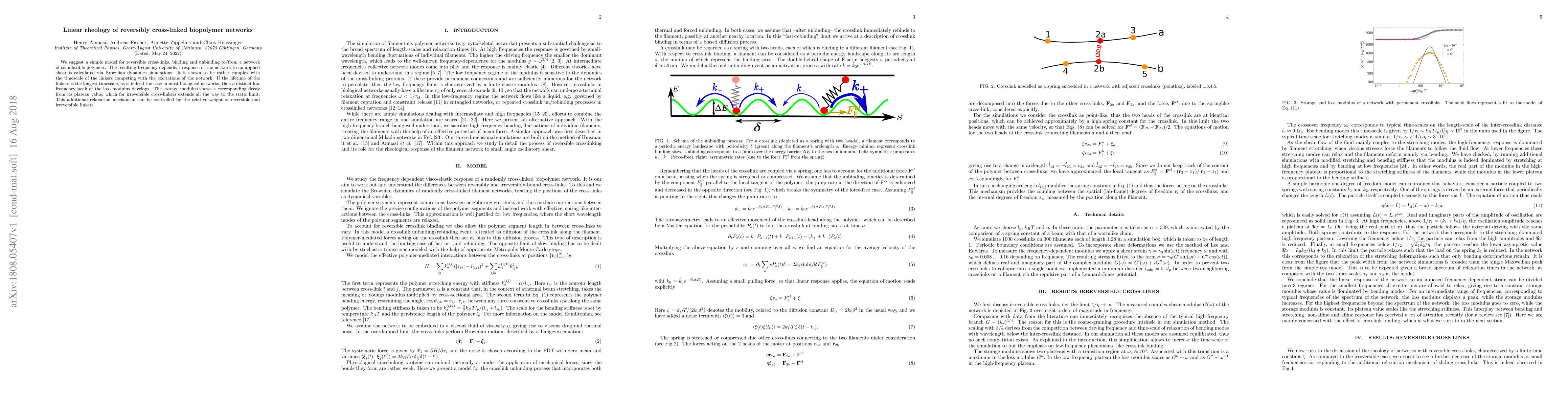 Researchers developed a model to study reversible cross-linked biopolymer networks, finding that a distinct low-frequency peak in the loss modulus develops if the lifetime of the linkers is longest, impacting network behavior.