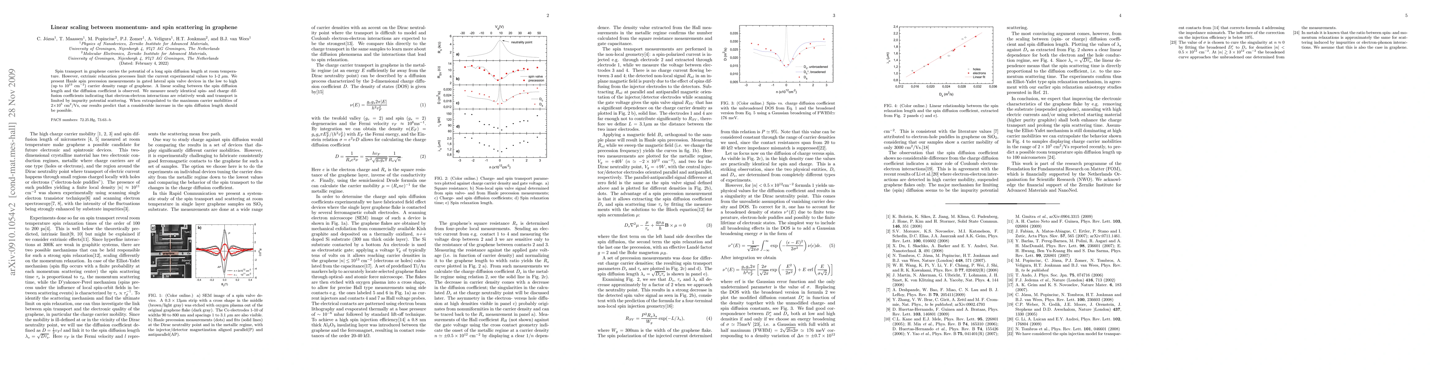Spin transport in graphene carries the potential of a long spin diffusion length at room temperature. However, extrinsic relaxation processes limit the current experimental values to 1-2 um. We present Hanle spin precession measurements in gated lateral spin valve devices in the low to high (up to 10^13 cm^-2) carrier density range of graphene. A linear scaling between the spin diffusion length and the diffusion coefficient is observed. We measure nearly identical spin- and charge diffusion coefficients indicating that electron-electron interactions are relatively weak and transport is limited by impurity potential scattering. When extrapolated to the maximum carrier mobilities of 2x10^5 cm^2/Vs, our results predict that a considerable increase in the spin diffusion length should be possible.