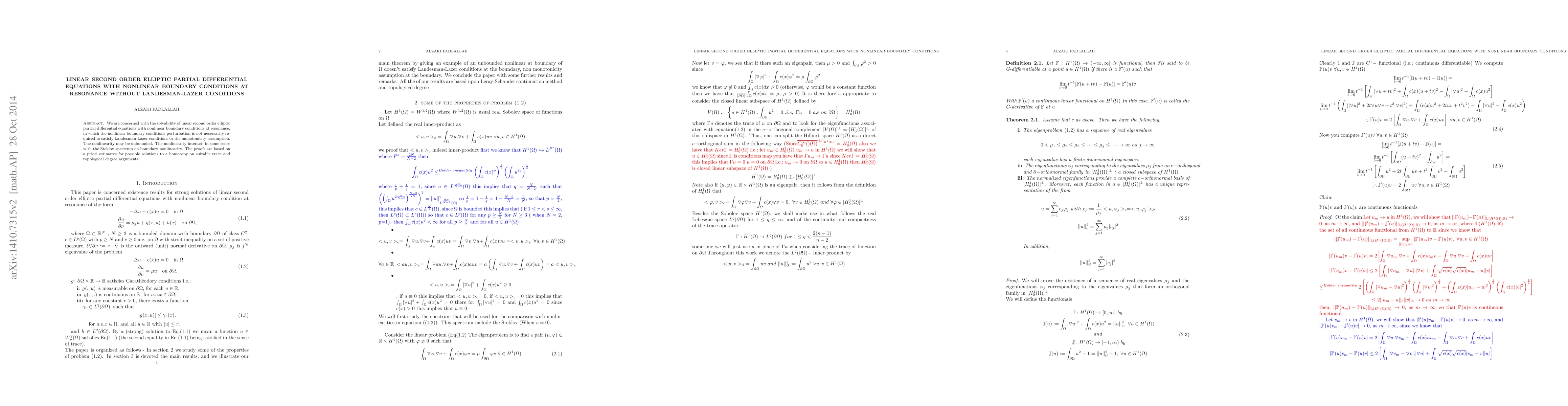 This paper investigates the solvability of linear second-order elliptic partial differential equations with nonlinear boundary conditions at resonance, without requiring Landesman-Lazer conditions or monotonicity. The proofs utilize a priori estimates and topological degree arguments.
