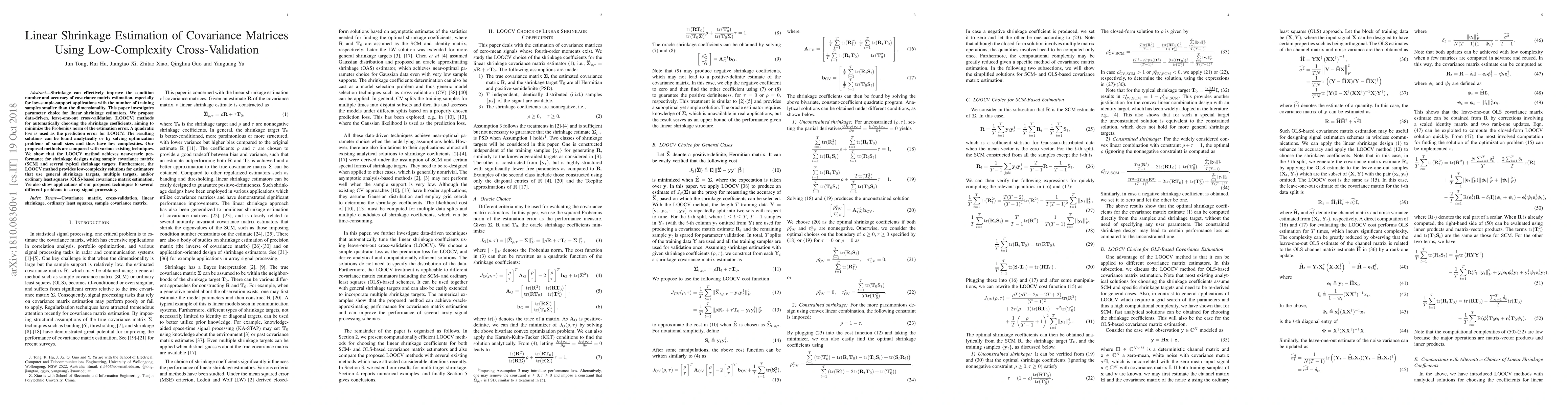 This paper proposes a data-driven, leave-one-out cross-validation method for selecting shrinkage coefficients to improve covariance matrix estimation, achieving near-oracle performance with low computational complexity. The method is applied to various shrinkage targets and demonstrated in array signal processing.