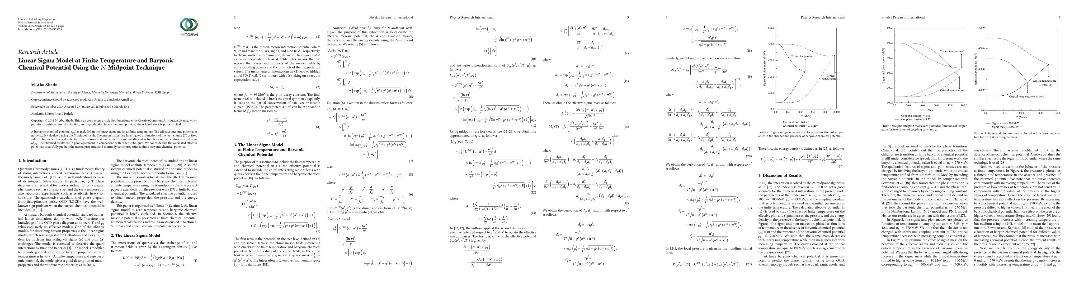 This paper investigates the linear sigma model at finite temperature and baryonic chemical potential using the midpoint technique, finding good agreement with other methods. It successfully predicts meson properties and thermodynamic properties, including meson masses, pressure, and energy density as functions of temperature.