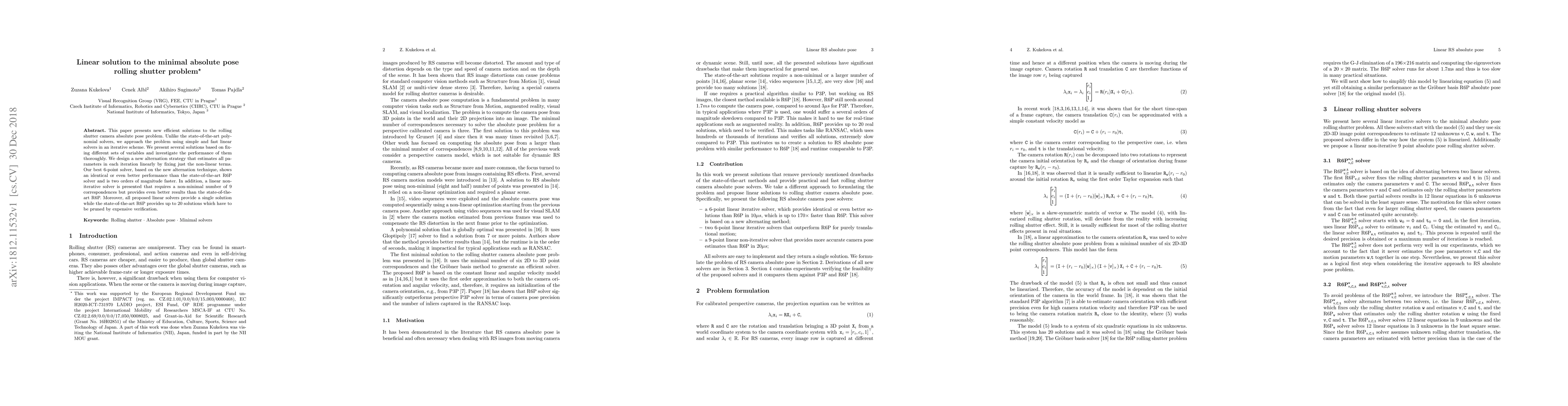 The paper presents novel linear solvers for the rolling shutter camera absolute pose problem, employing an alternating strategy to estimate parameters efficiently.