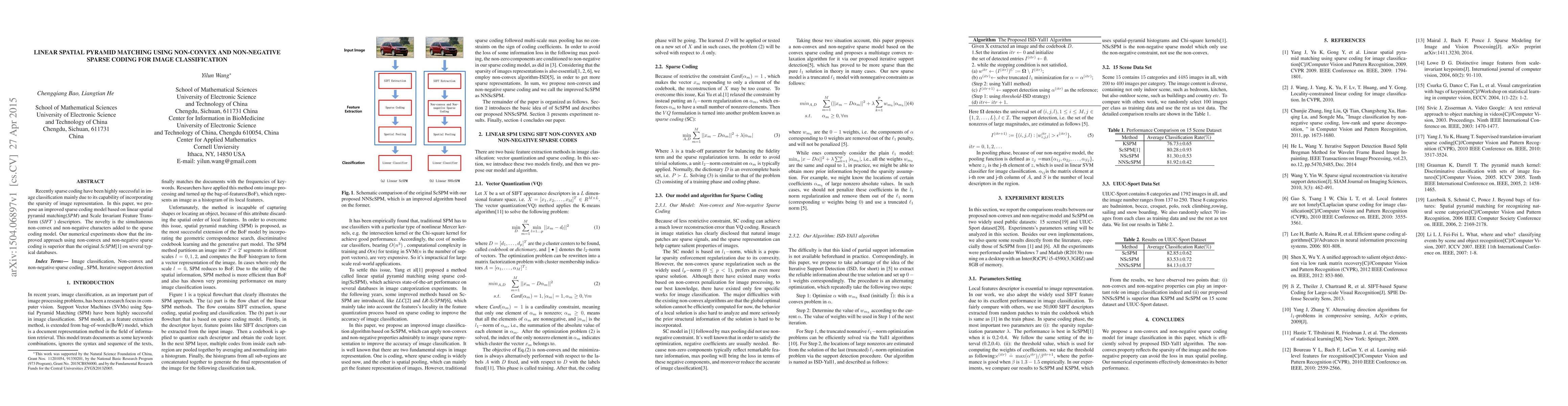 This paper proposes an enhanced sparse coding model incorporating non-convex and non-negative characteristics for image classification, utilizing linear spatial pyramid matching and SIFT descriptors. Experimental results demonstrate superior performance compared to the original ScSPM model on various image databases.