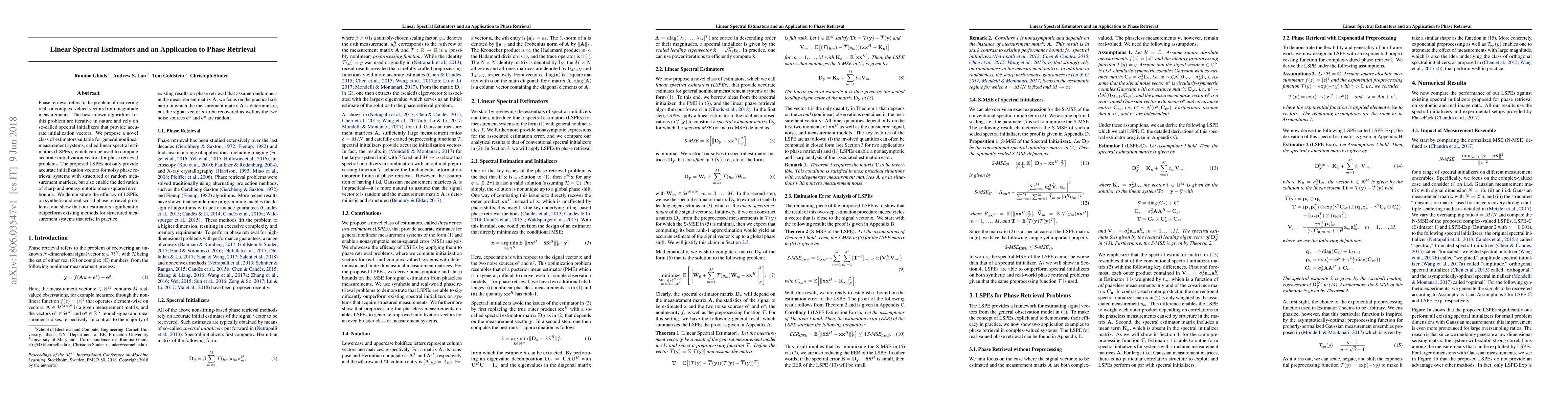 A new class of estimators called linear spectral estimators (LSPEs) is proposed for solving phase retrieval problems in noisy systems with structured or random measurement matrices. The LSPEs provide accurate initialization vectors and enable sharp mean-squared error bounds.
