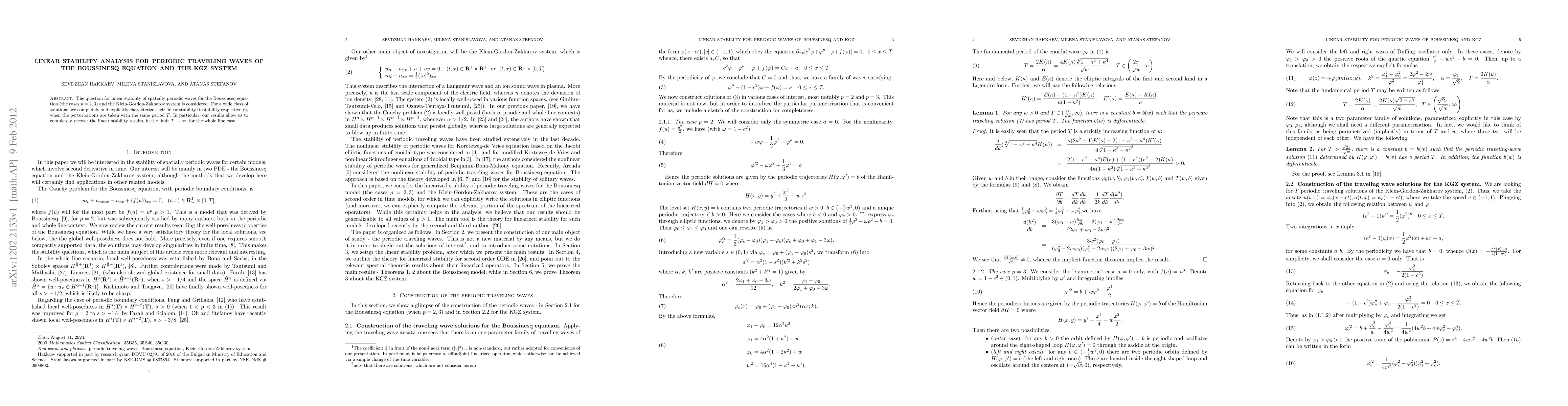 This paper conducts a linear stability analysis of spatially periodic traveling waves for the Boussinesq equation and the Klein-Gordon-Zakharov system, explicitly characterizing their stability when perturbations share the same period. The results also extend to recover linear stability for the whole line case as the period approaches infinity.