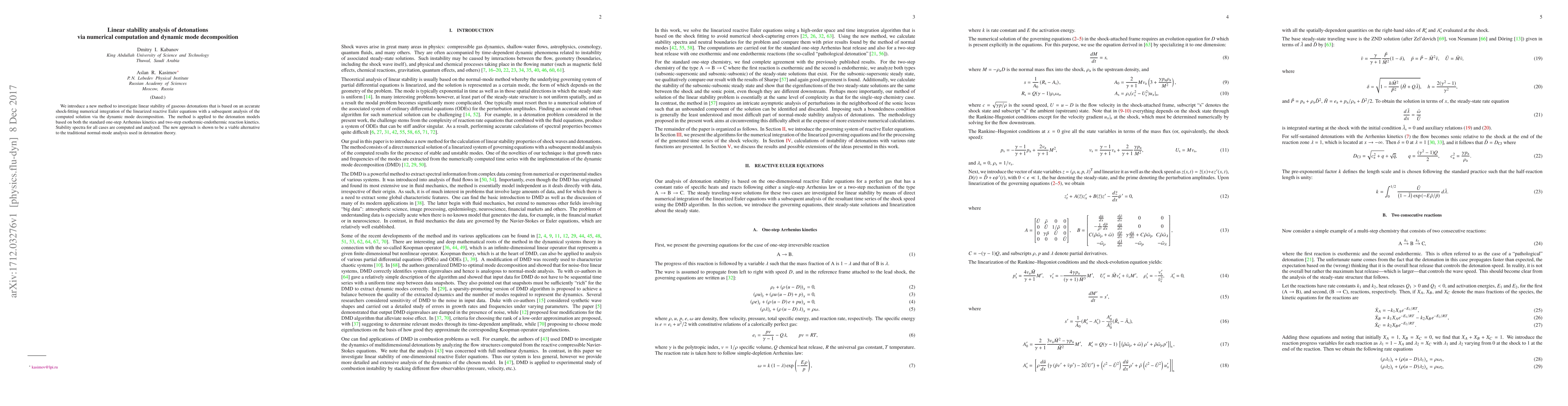 Researchers introduced a new method to analyze detonation stability, showing it as a viable alternative to traditional methods, and found stability spectra for various reaction kinetics models.