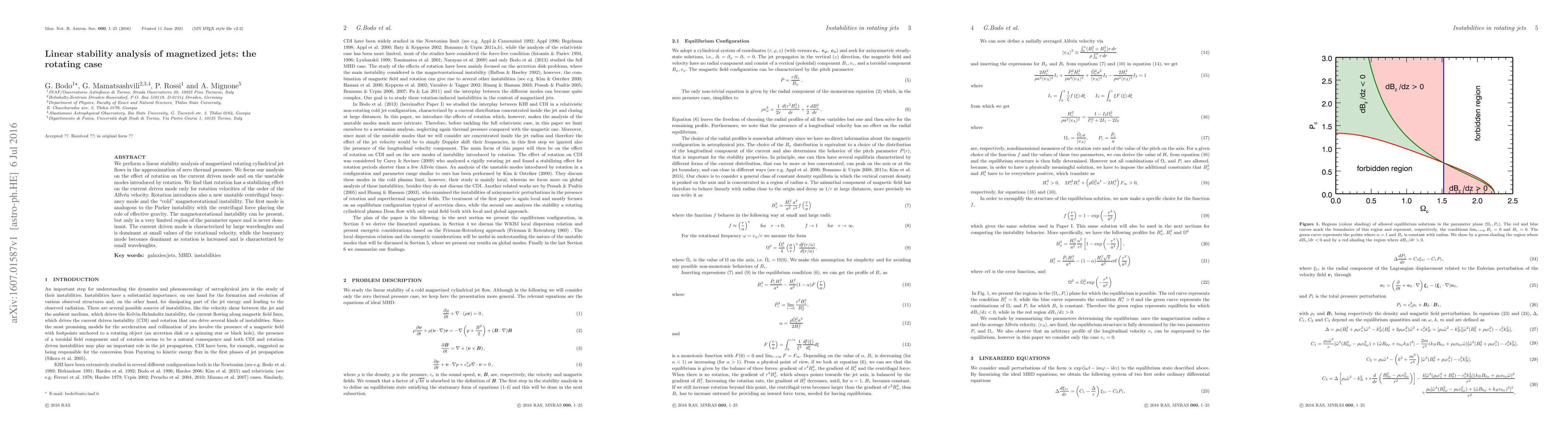 This paper analyzes the stability of magnetized rotating jet flows, finding that rotation introduces new unstable modes while stabilizing one mode, with different effects at low and high rotational velocities.