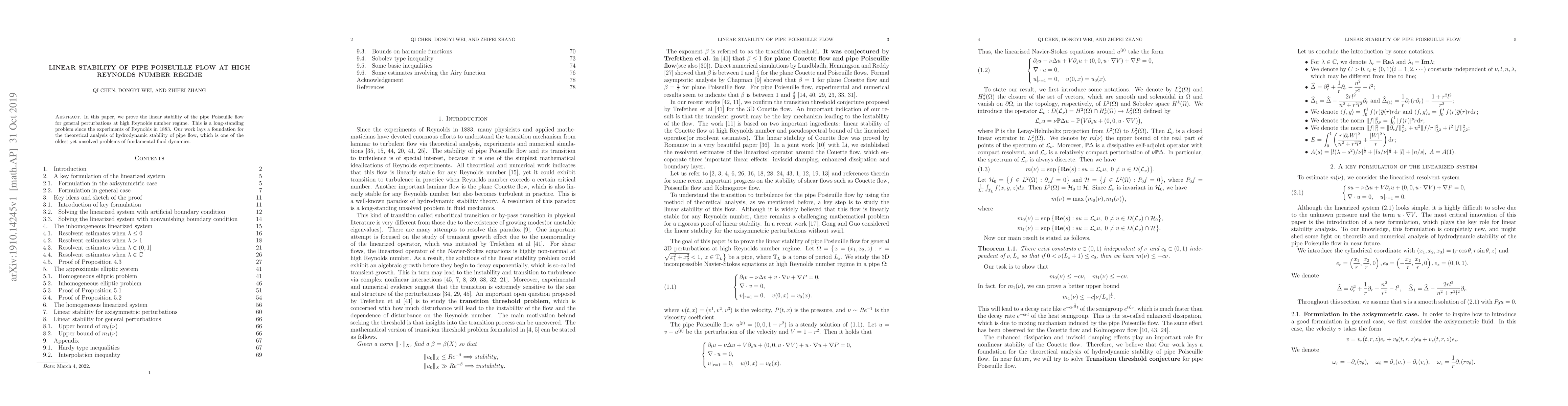 This paper proves the linear stability of pipe Poiseuille flow under general perturbations at high Reynolds number, addressing a long-standing problem since Reynolds' experiments in 1883. This work lays a foundational theoretical analysis for the hydrodynamic stability of pipe flow.