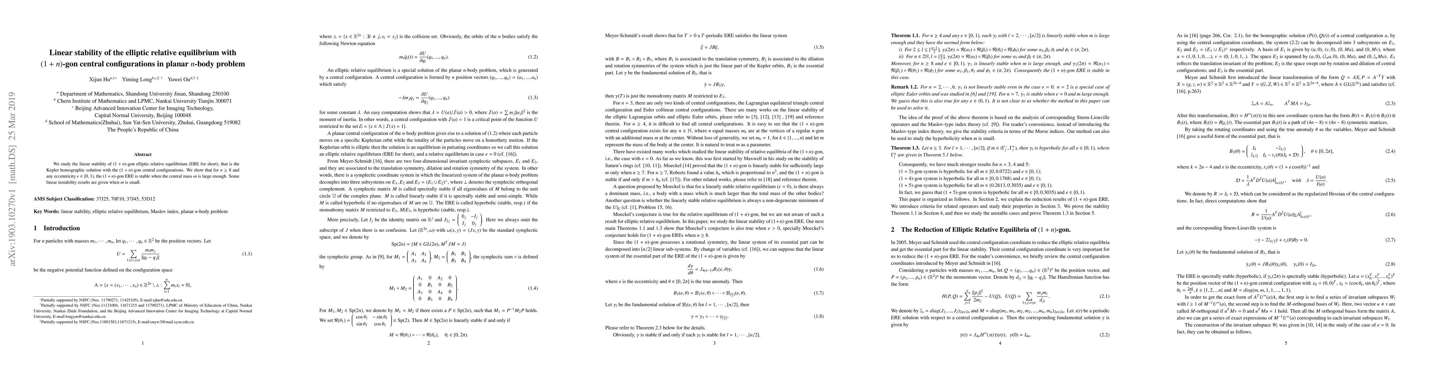 This paper investigates the linear stability of $(1+n)$-gon elliptic relative equilibria in the planar $n$-body problem, demonstrating stability for large central masses when $n\geq 8$ and any eccentricity $e\in[0,1)$. It also presents linear instability conditions for small central masses.