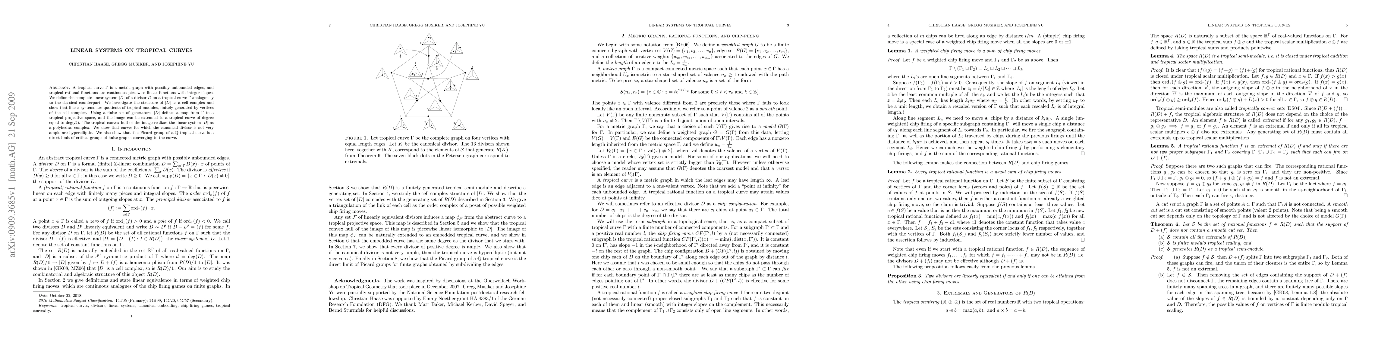 The paper defines the complete linear system on tropical curves and explores its structure as a cell complex and polyhedral complex, demonstrating the connection to tropical projective space and the hyperelliptic nature of certain curves. The Picard group of a \(\mathbb{Q}\)-tropical curve is shown to be a direct limit of critical groups of finite graphs.