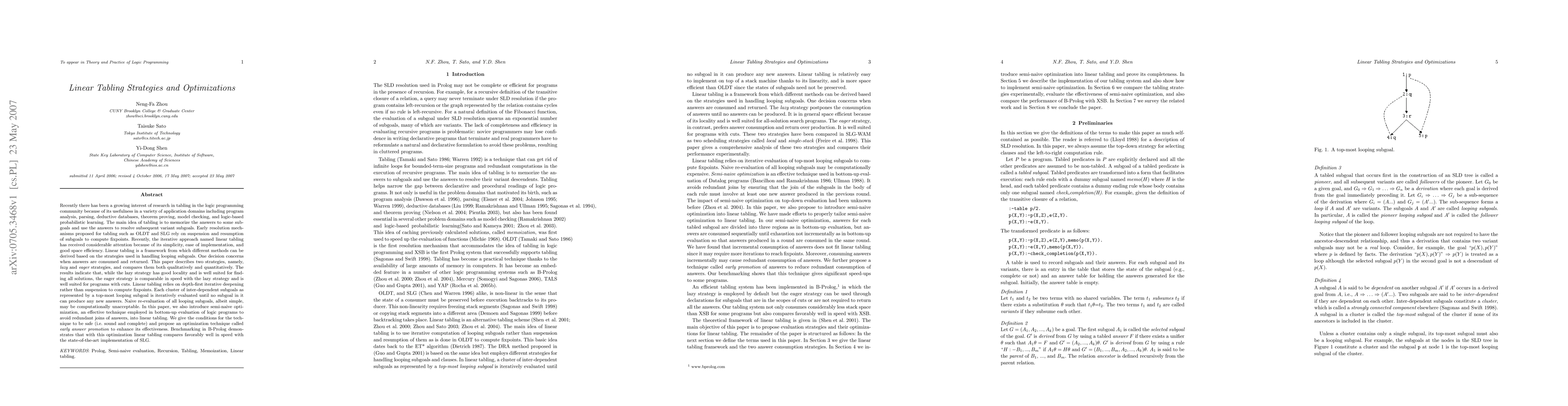 A study comparing lazy and eager strategies in linear tabling for logic programming reveals that both have comparable speeds but with different strengths, with the latter suited for programs with cuts, and an optimization technique improving its effectiveness.